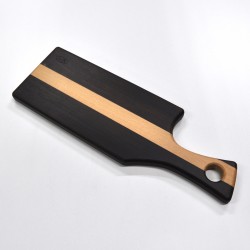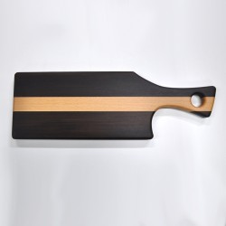 Cutting board made by hand with natural mansonia and beech wood. Edge-grain design. Finished with natural mineral oil and our preparation with beeswax.