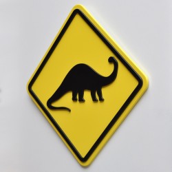 Cuadro de señal de "aviso Diplodocus" fabricado en tablero de fibras y con acabado lacado y con relieve. En 40x40cm.