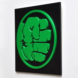 Cuadro de Hulk fabricado en tablero de fibras y con acabado lacado y con relieve. En 30x30cm.