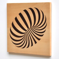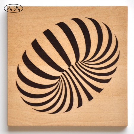Cuadro fabricado artesanalmente usando chapas de maderas nobles, y diseño de una rueda con efecto 3D. Acabado barnizado.