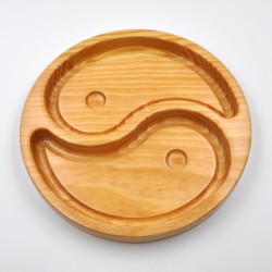 Bandeja multiusos con forma de yin y yang. Fabricada en madera natural de pino.