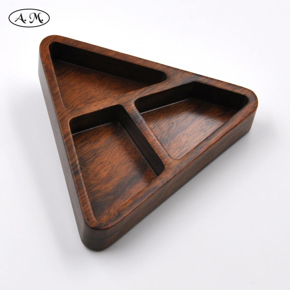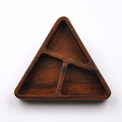 Bandeja multiusos con forma triangular. Fabricada en madera natural de mongoy.