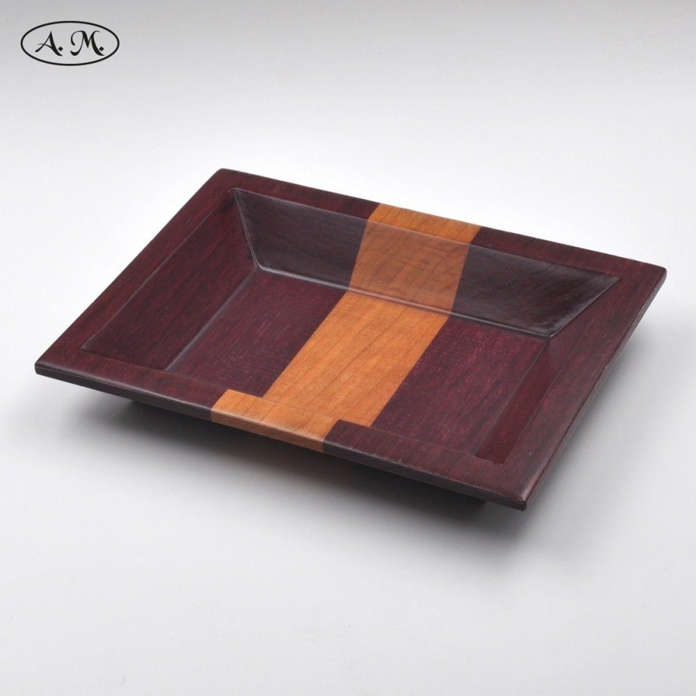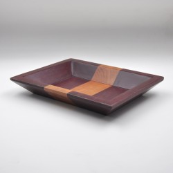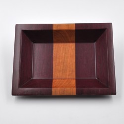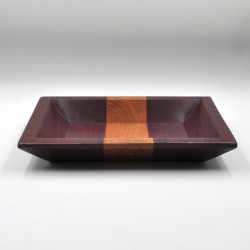 Bandeja multiusos fabricada artesanalmente en madera natural de nazareno y cerezo. Diseño rectangular. Acabado barnizado.