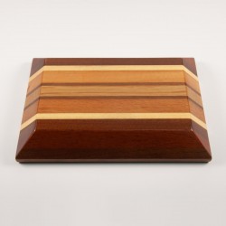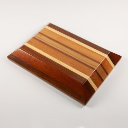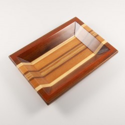 Bandeja multiusos fabricada artesanalmente en madera natural de embero, cedro, koto, haya, mansonia y roble. Diseño rectangular. Acabado barnizado.