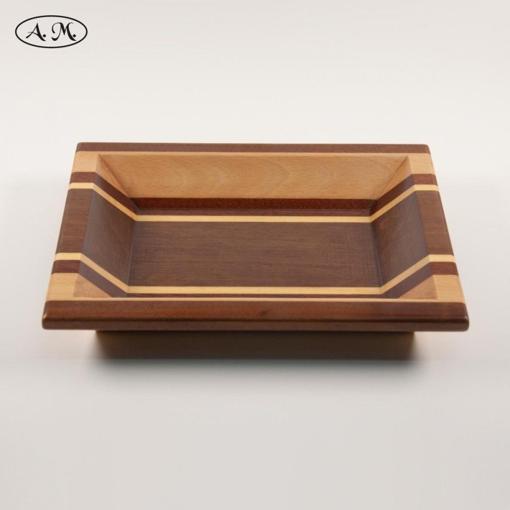 Bandeja multiusos con forma rectangular. Fabricada en madera natural de embero, haya, sapelly, koto y mansonia.