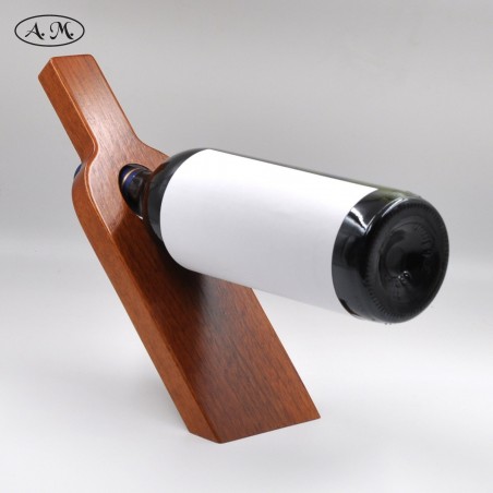 Porta-botellas de equilibrio con forma de botella. Fabricado con madera natural de cedro.