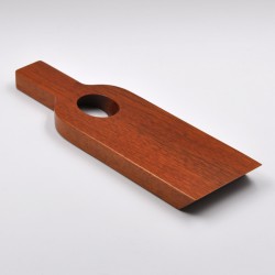 Porta-botellas artesanal fabricado con madera natural de cedro y con capacidad para una botella de vino. Diseño que imita una botella. Acabado barnizado.