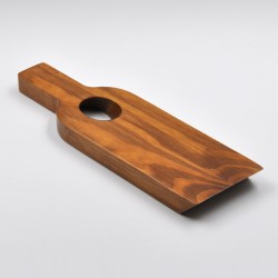 Porta-botellas artesanal fabricado con madera natural de pino teñida en color nogal y con capacidad para una botella de vino. Diseño que imita una botella. Acabado barnizado.