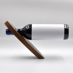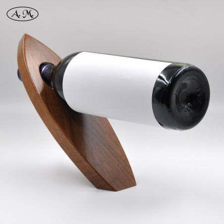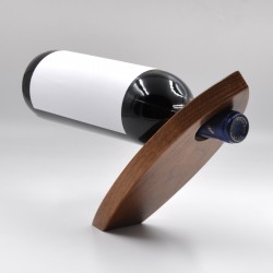 Porta-botellas de equilibrio con forma de tabla de surf. Fabricado con madera natural de roble teñida en color nogal.
