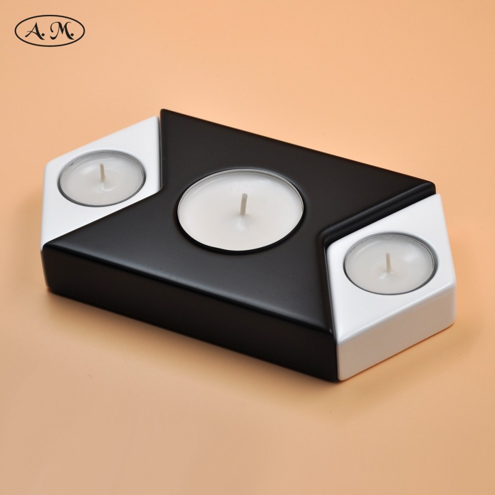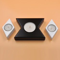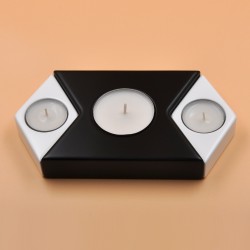 Portavelas fabricado en tablero de fibras y con acabado lacado.