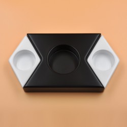 Diseño que consiste en dos rombos de 110x61x25mm de tamaño aproximadamente, y una pieza rectangular con vaciado para encajar los rombos, con medidas aproximadas de 146x110x30mm. Todas las piezas son individuales.
