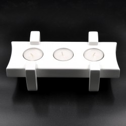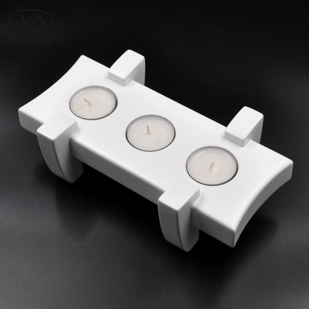 Portavelas fabricado en tablero de fibras y con acabado lacado.