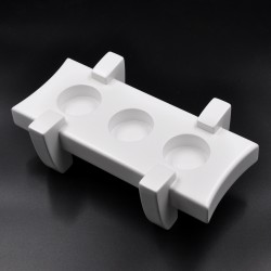 Portavelas fabricado a mano en tablero de fibras. Acabado lacado.
