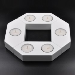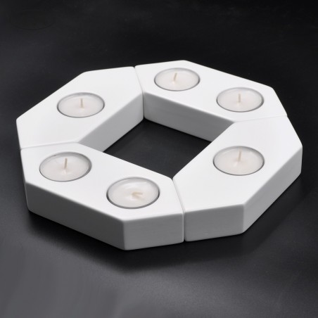 Portavelas fabricado en tablero de fibras y con acabado lacado.