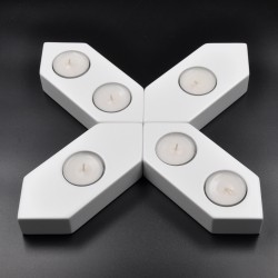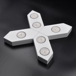 Portavelas fabricado a mano en tablero de fibras. Acabado lacado.