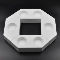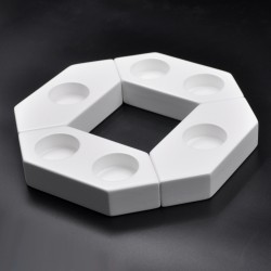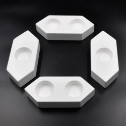 Consta de cuatro piezas independientes con forma de hexágonos irregulares, cada una con medidas aproximadas de 160x66x30mm. Se pueden combinar de distintas formas, para formar un octógono o una cruz, entre otros.