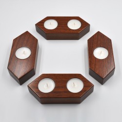 Portavelas fabricado a mano en madera natural de sapelly. Acabado barnizado.