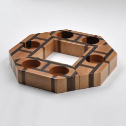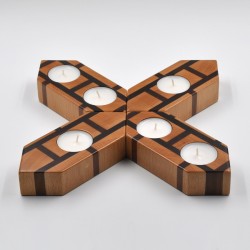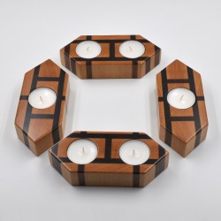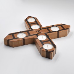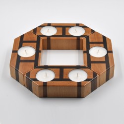 Portavelas fabricado en madera natural de haya y mansonia con la veta a testa.