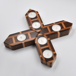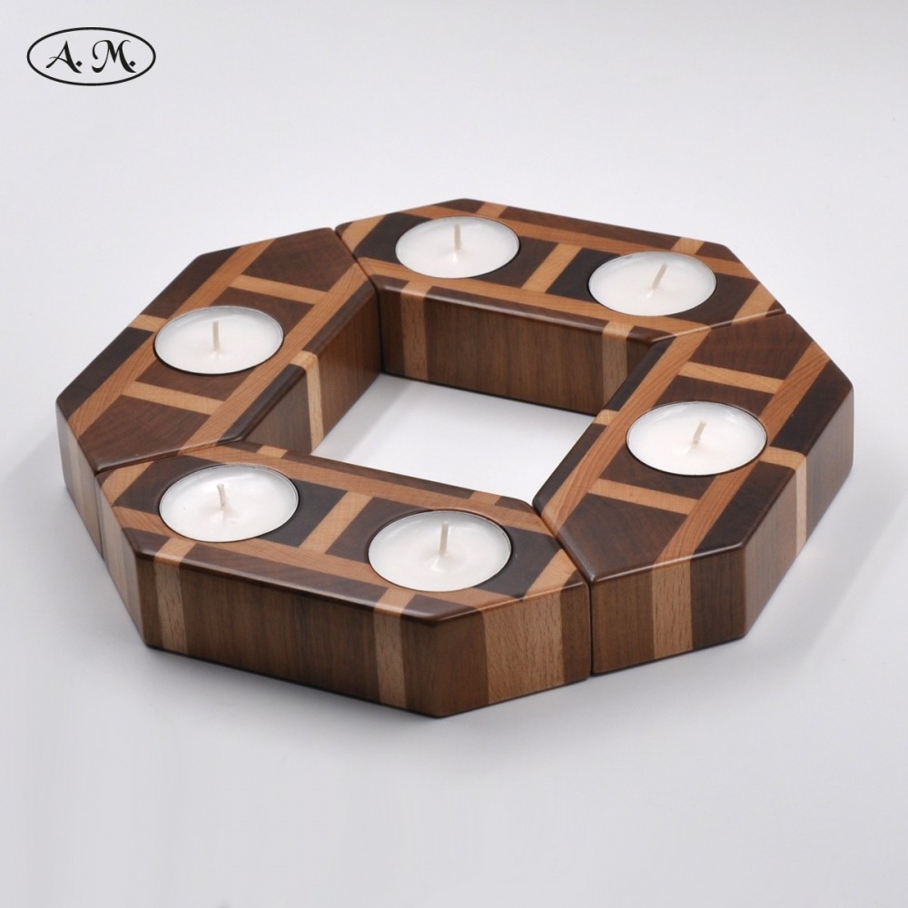 Portavelas fabricado en madera natural de mansonia y haya con la veta a testa.