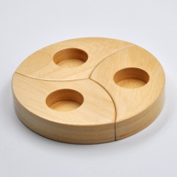 Consta de tres piezas independientes e iguales, de aproximadamente 147x85x25mm, que al combinarse forman un círculo de aproximadamente 170mm de diámetro.
