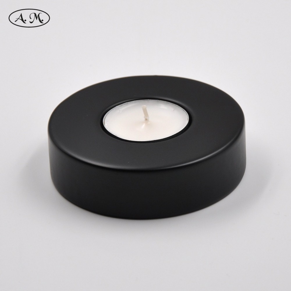 Portavelas redondo de 90mm de diámetro. Fabricado en tablero de fibras y con acabado lacado.