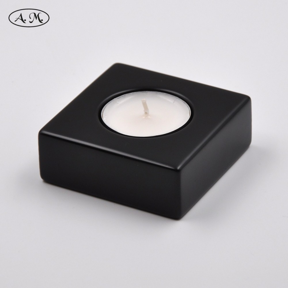 Portavelas cuadrado 70mm lacado negro