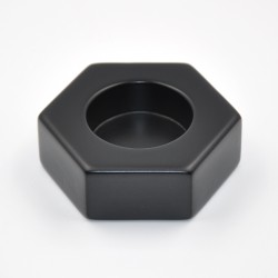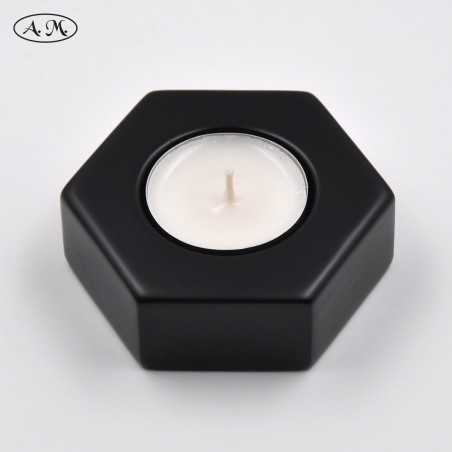 Portavelas con forma de hexágono de 80mm de ancho. Fabricado en tablero de fibras y con acabado lacado.
