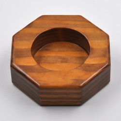 Portavelas con forma de octógono de 100mm de ancho. Fabricado en madera natural de pino teñida en color nogal.