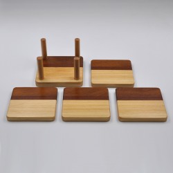 Posavasos de maderas variadas, fabricados en madera natural de iroko, sapelly y koto.