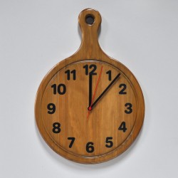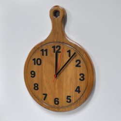Reloj de pared inspirado en una tabla de cortar. Fabricado en madera natural de pino teñida en color nogal y resina epoxy. En 40x29cm.