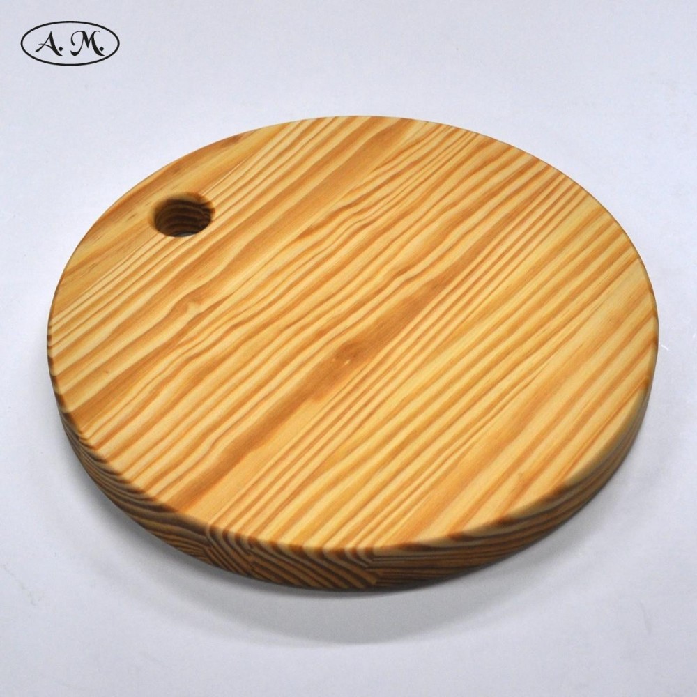 Tabla de cortar fabricada a mano con madera natural de pino. Diseño a favor de veta. Acabada con aceite mineral natural y nuestro preparado con cera de abeja. Completamente lisa por las dos caras.