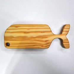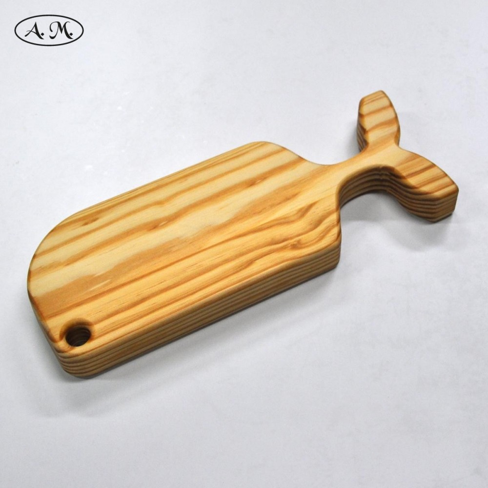 Tabla de cortar fabricada a mano con madera natural de pino. Diseño a favor de veta. Acabada con aceite mineral natural y nuestro preparado con cera de abeja. Completamente lisa por las dos caras.