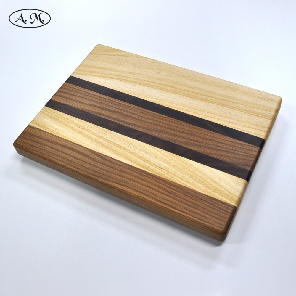 Tabla de cortar fabricada con madera natural de koto, nogal y roble.