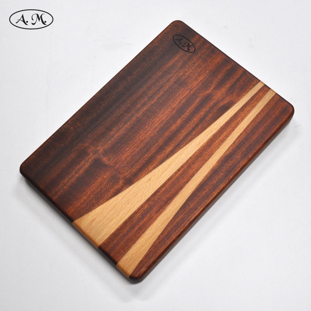 Tabla de cortar fabricada con madera natural de sapelly y haya.