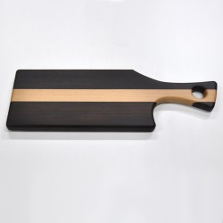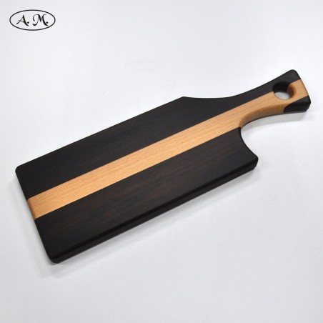 Tabla de corte y presentación fabricada con madera natural de mansonia y haya.