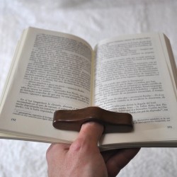 Práctico accesorio para facilitar la lectura de libros con una mano. Fabricado en madera natural de mansonia.