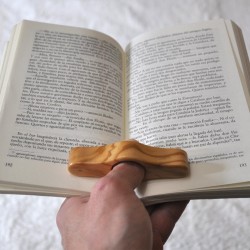 Práctico accesorio para facilitar la lectura de libros con una mano. Fabricado en madera natural de olivo.