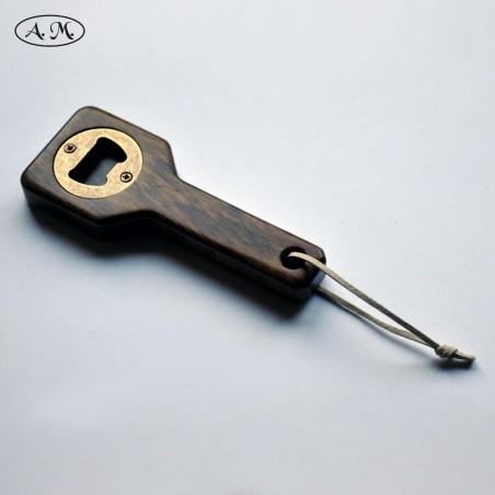 Práctico abridor de mano para quitar la chapa de las botellas. Fabricado en madera natural de mongoy.