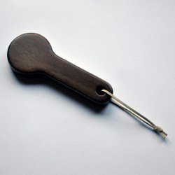Práctico abridor de mano para quitar la chapa de las botellas. Fabricado en madera natural de mansonia.