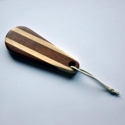 Práctico abridor de mano para quitar la chapa de las botellas. Fabricado en madera natural de sapelly y koto.