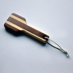 Práctico abridor de mano para quitar la chapa de las botellas. Fabricado en madera natural de sapelly y koto.