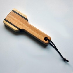 Práctico abridor de mano para quitar la chapa de las botellas. Fabricado en madera natural de haya, mansonia y koto.