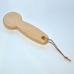 Práctico abridor de mano para quitar la chapa de las botellas. Fabricado en madera natural de fresno.