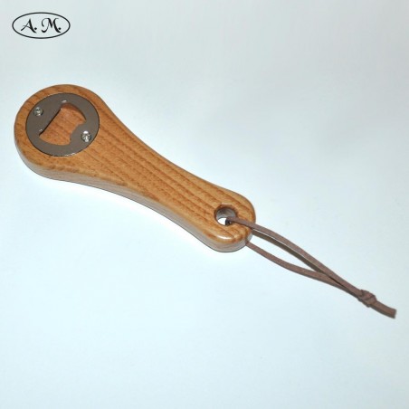 Práctico abridor de mano para quitar la chapa de las botellas. Fabricado en madera natural de castaño.
