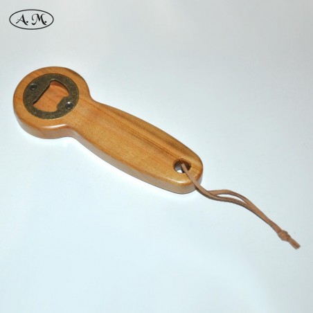 Práctico abridor de mano para quitar la chapa de las botellas. Fabricado en madera natural de cerezo.