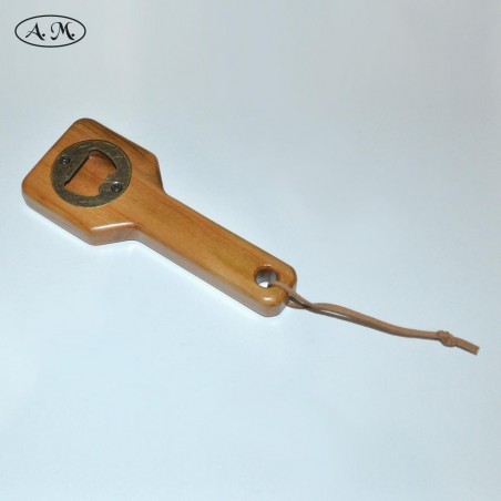 Práctico abridor de mano para quitar la chapa de las botellas. Fabricado en madera natural de cerezo.