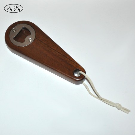 Práctico abridor de mano para quitar la chapa de las botellas. Fabricado en madera natural de embero.